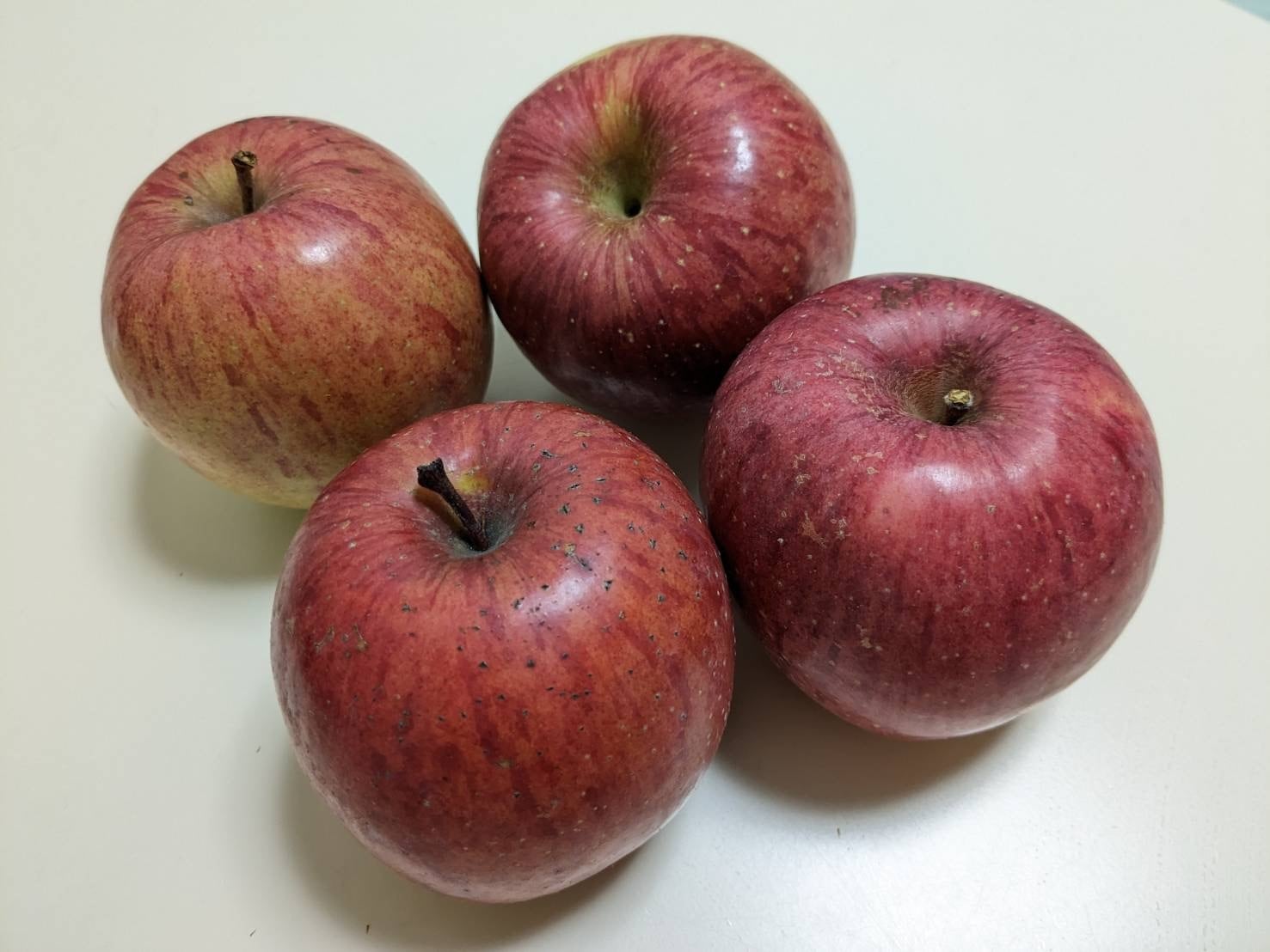 サンふじは黒いすすが付いていたら、洗うと取れますので皮まで食べられます。生傷等ある部分は、その部分だけ切ってからお召し上がりください。